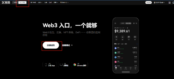 1、在我们的谷歌浏览器中,登录我们的 ok 交易所(https://www.okx.com/cn/web3)。点击左上角的 web3 钱包。再点击链接钱包。链接插件端钱包.如果没有钱包,就点击创建钱包。注意保护好助记词。